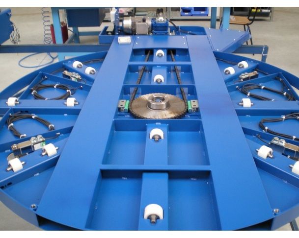 Vhodný pre modely: FS1 "CENTO", FS3xx. Disk Ø 1.650 mm; výška - 255 mm; bez údržbový reťazový pohon. Samostatný na syntetických valcoch 16x; silná pevná konštrukcia. Dopravné valce Ø 76 mm, krok 95 mm; Max zaťažení 1,500 kg. Ručný pohyb; Ručný brzdový systém na 6 rolkách. Zvukový tlak - < 80dB. Rozmery balenia: max. hmotnosť. 1 500 kg, max. rozmery balíka 1.100 x 1.200 mm